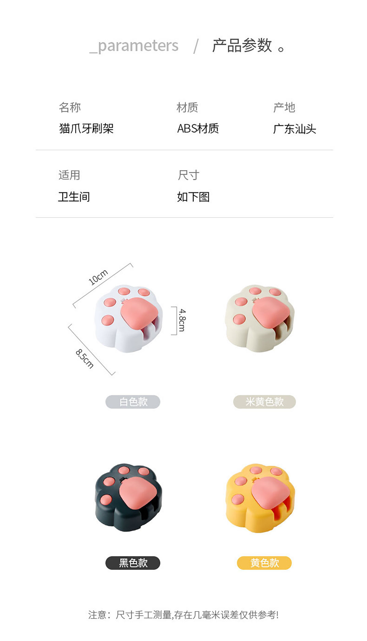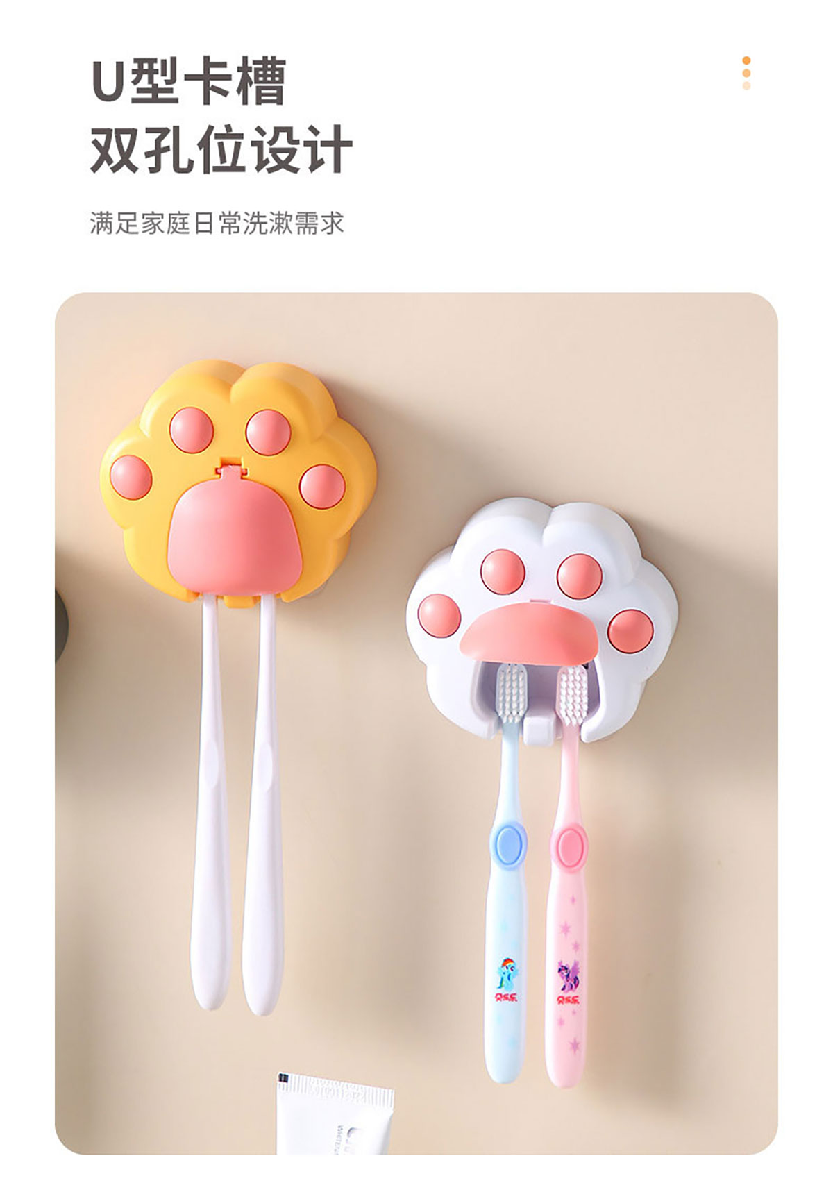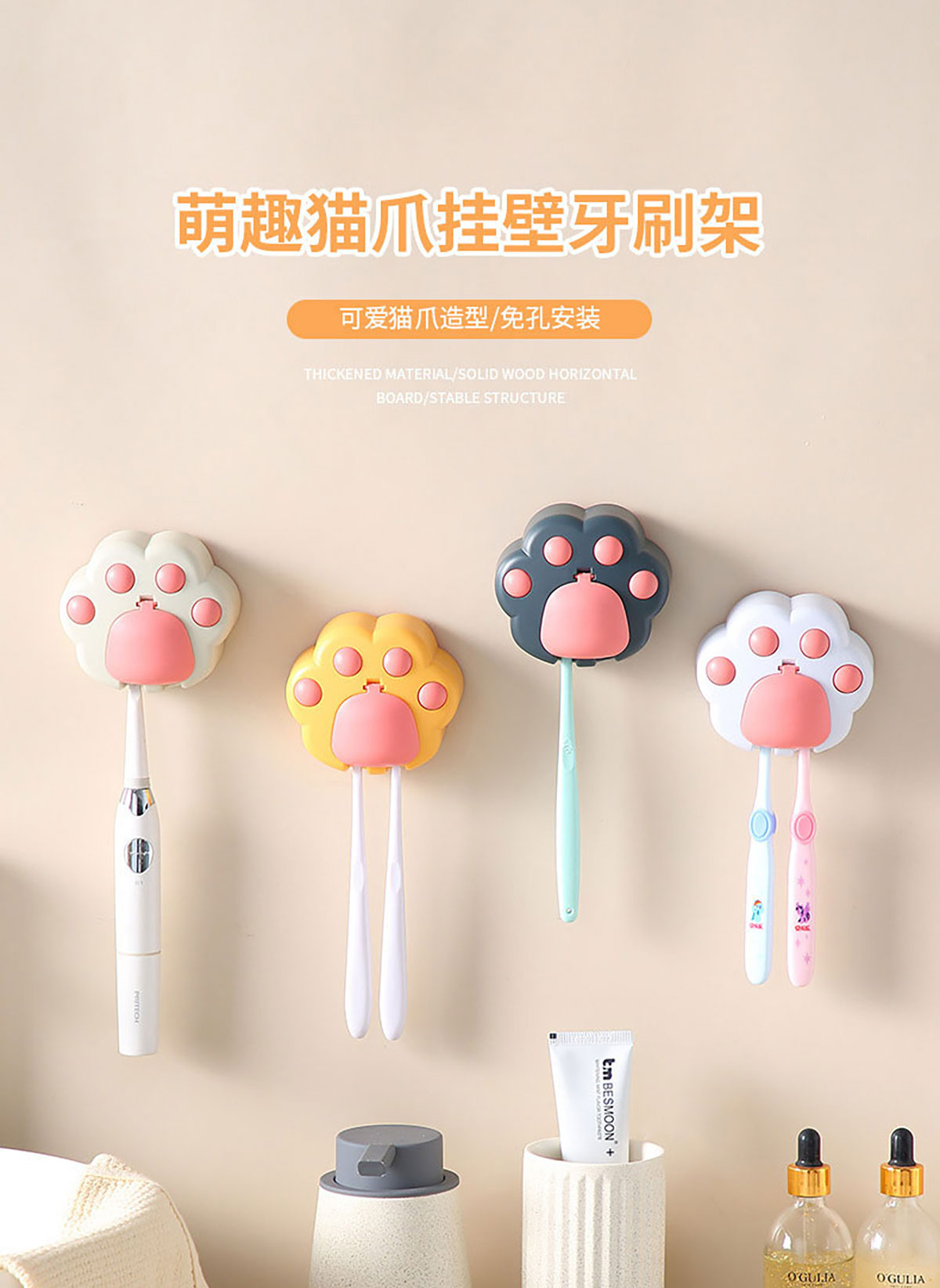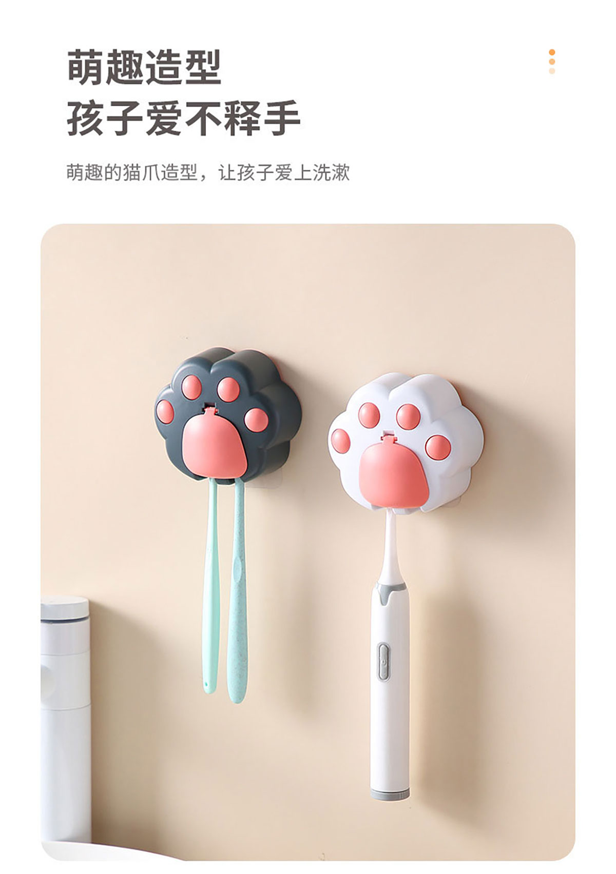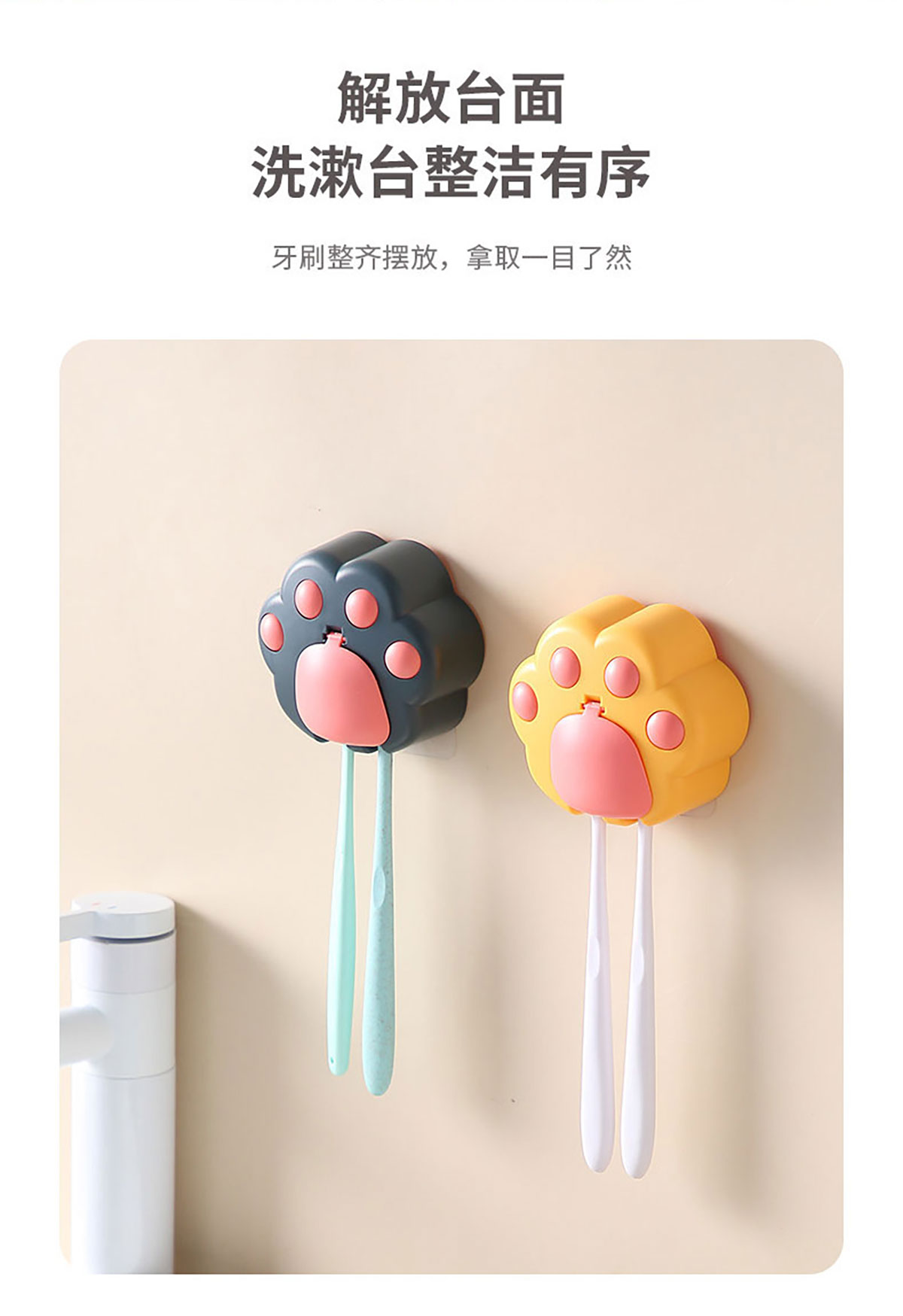 創(chuàng)意免打孔貓爪牙刷架(配無痕膠)