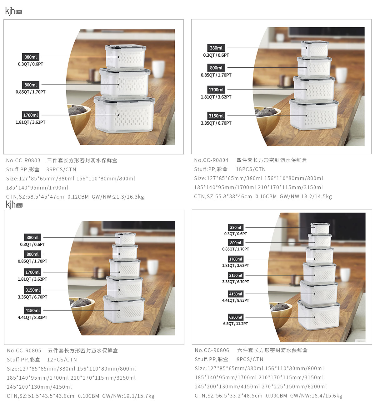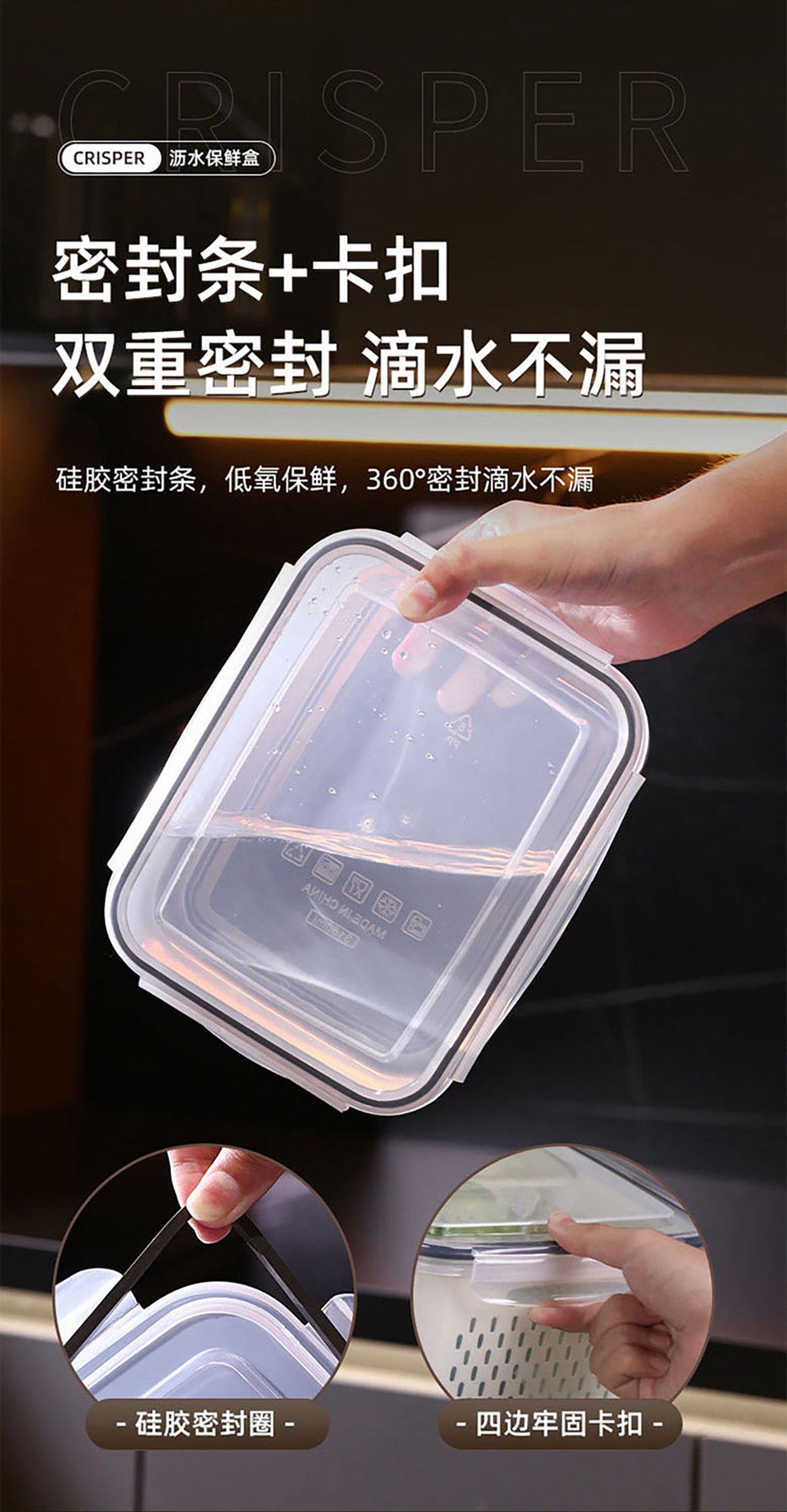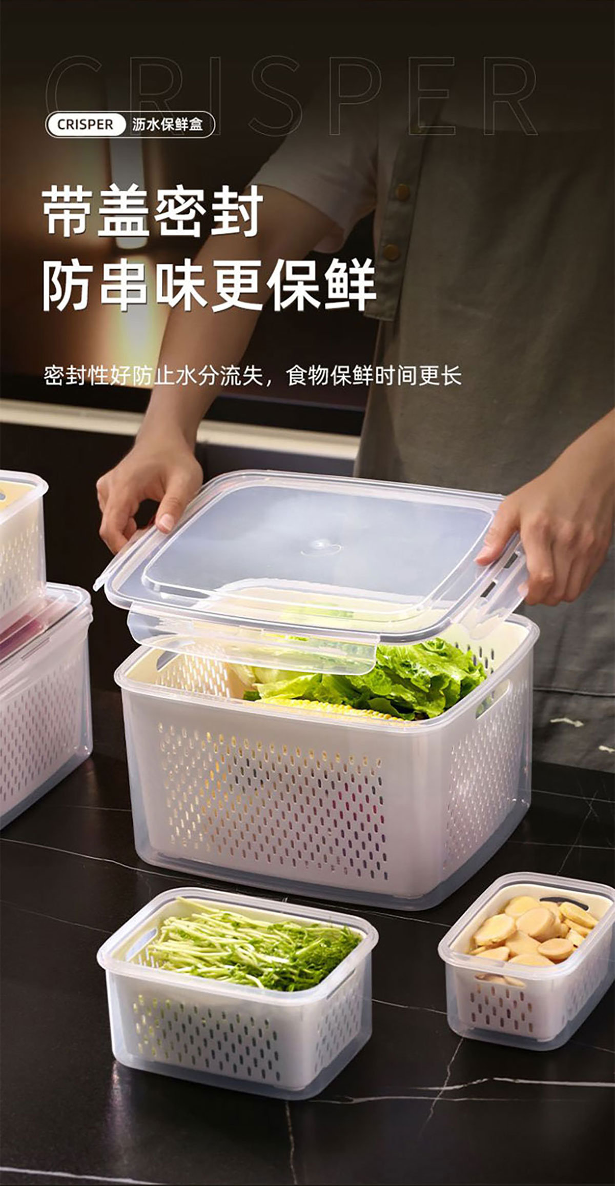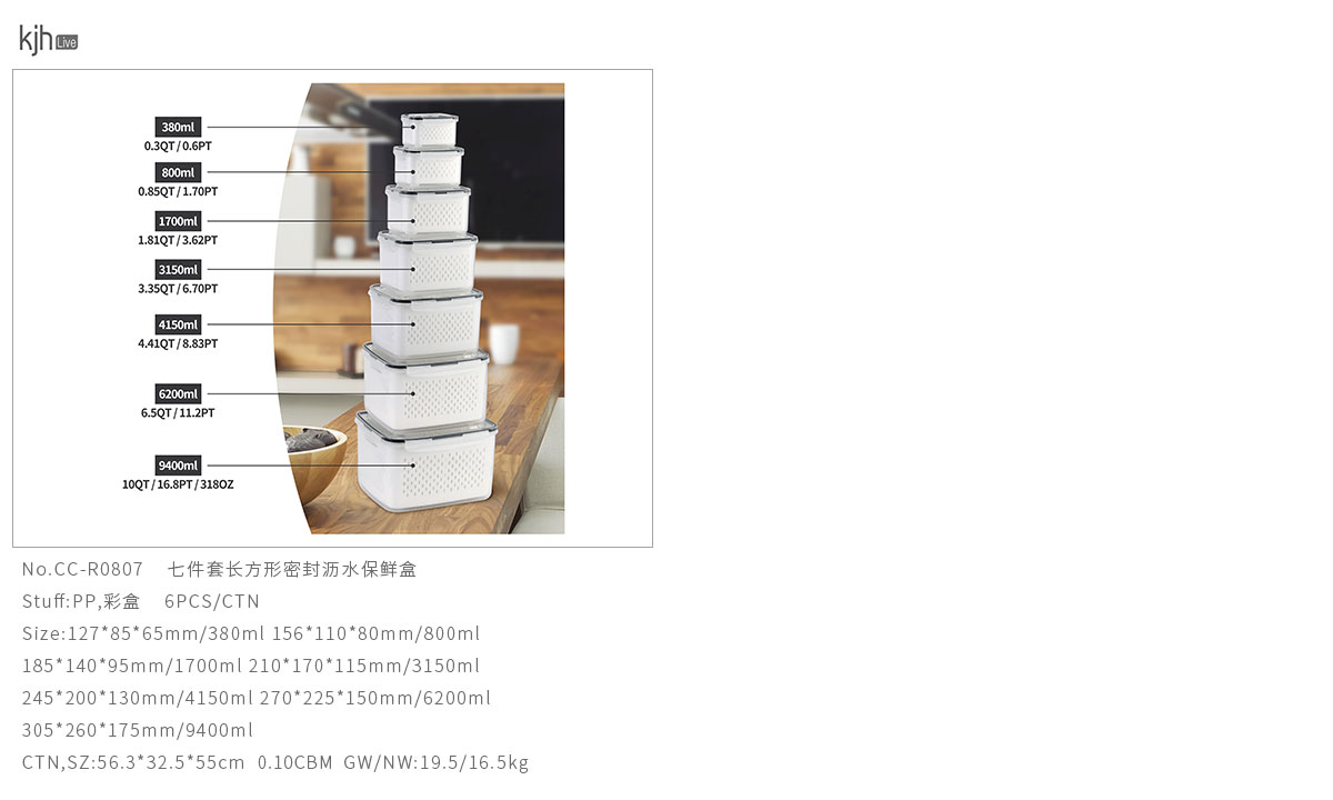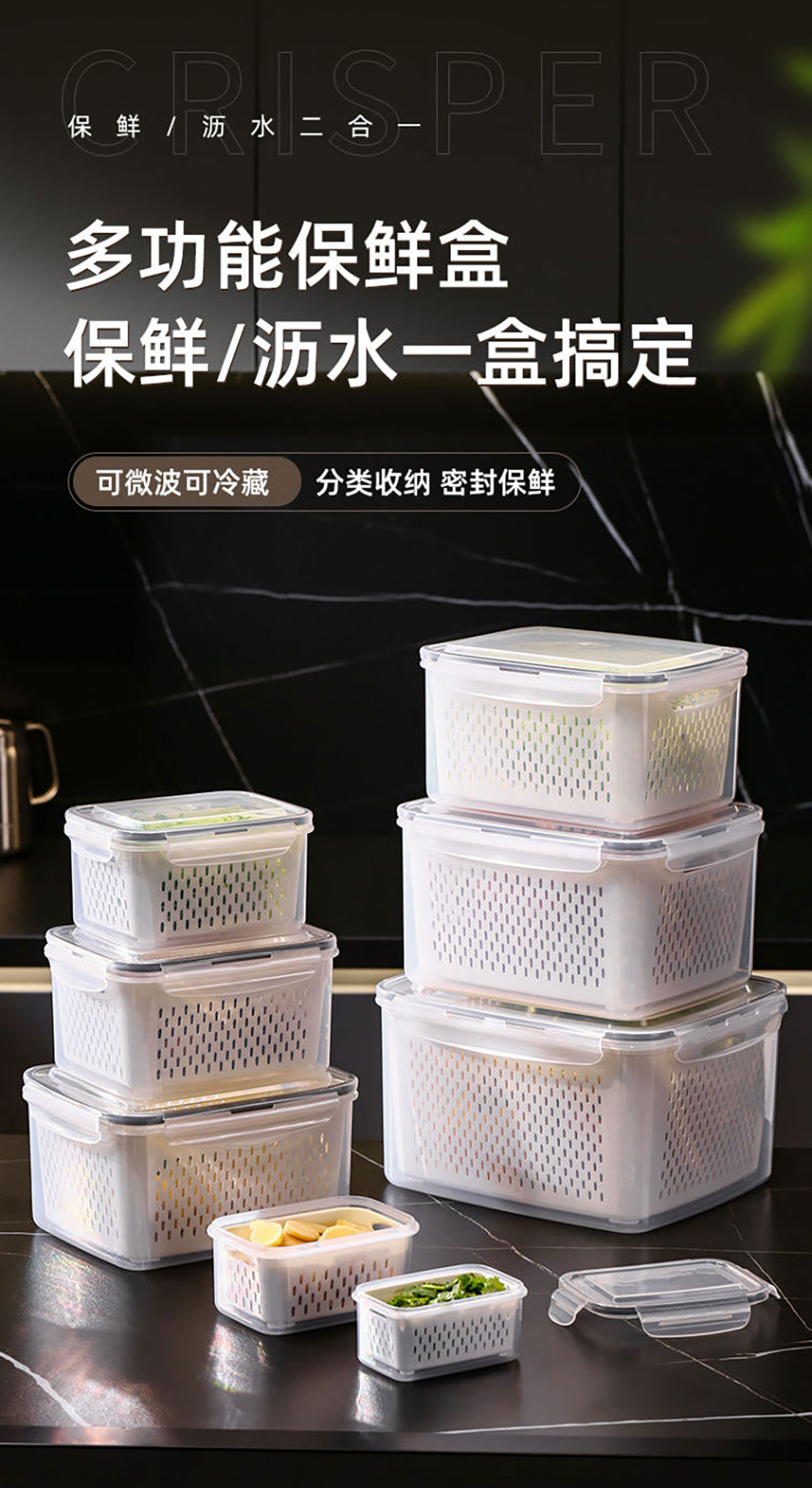 三件/四件/五件/六件/七件套長方形密封瀝水保鮮盒