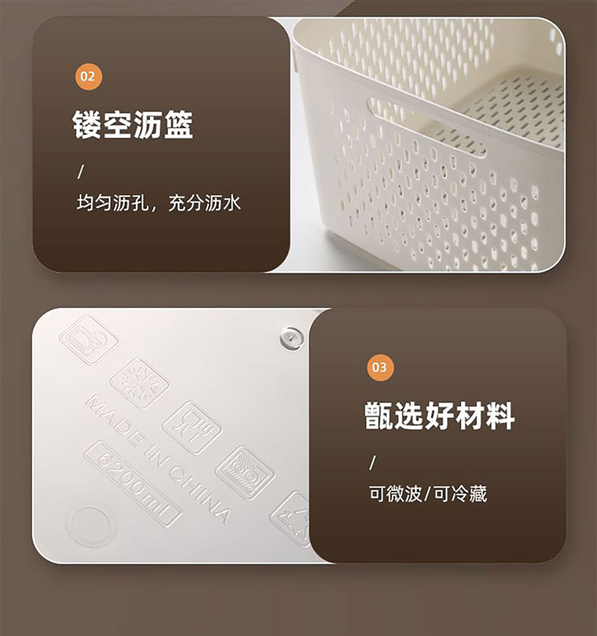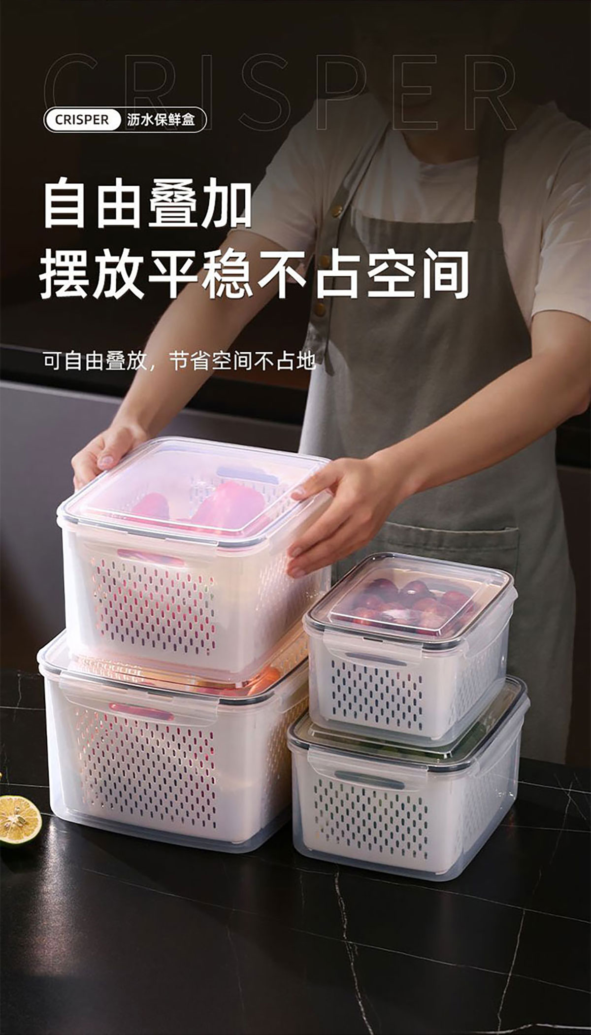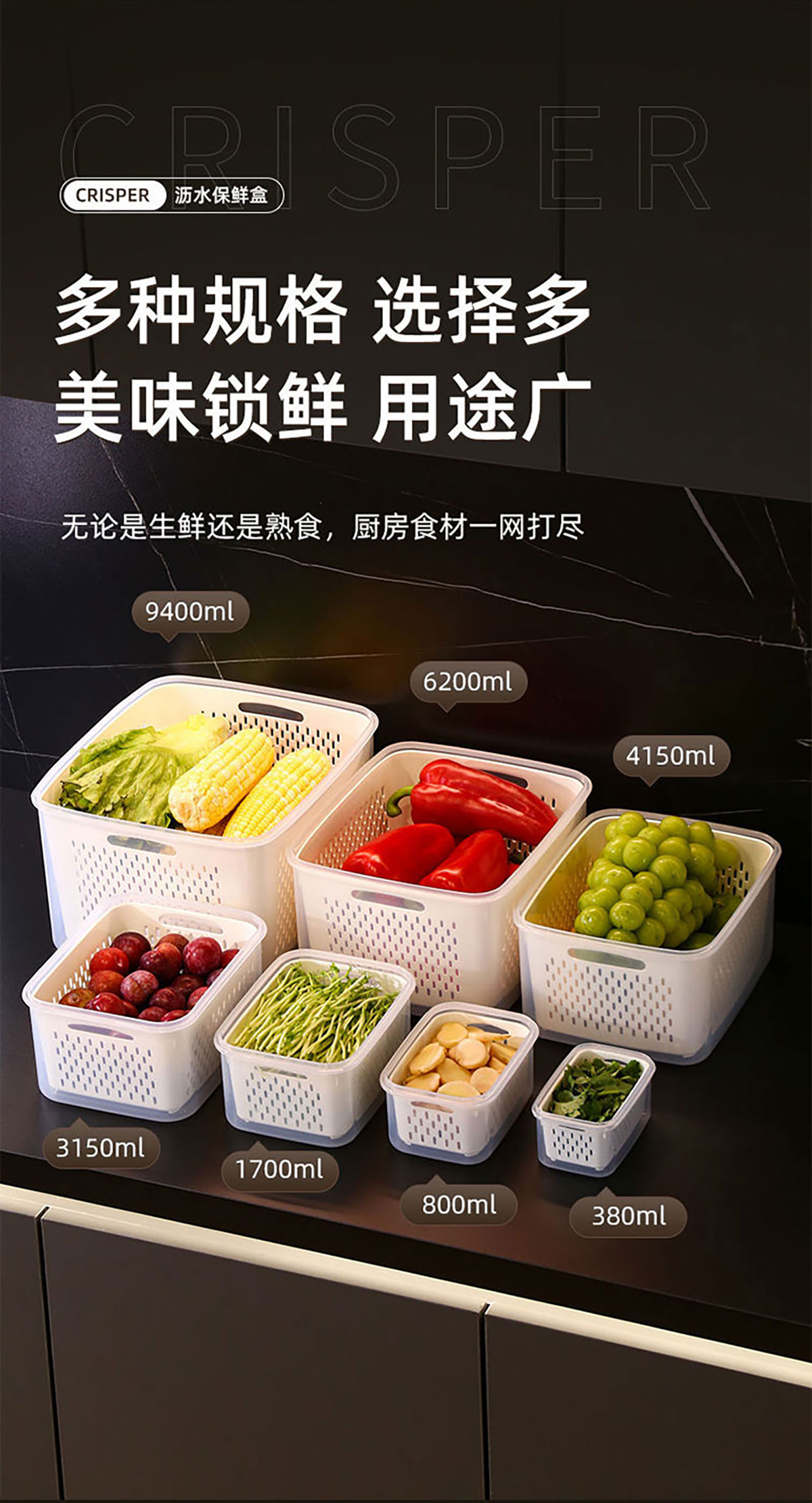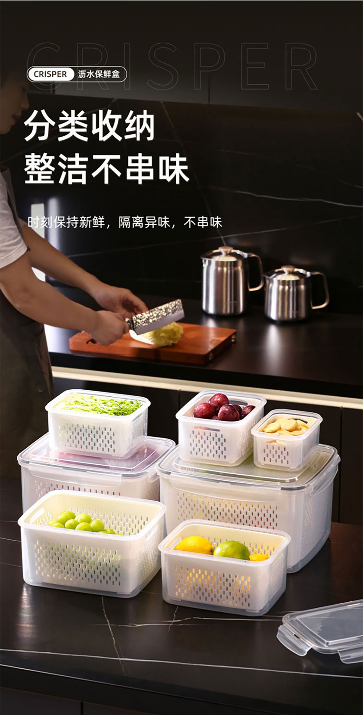 三件/四件/五件/六件/七件套長方形密封瀝水保鮮盒