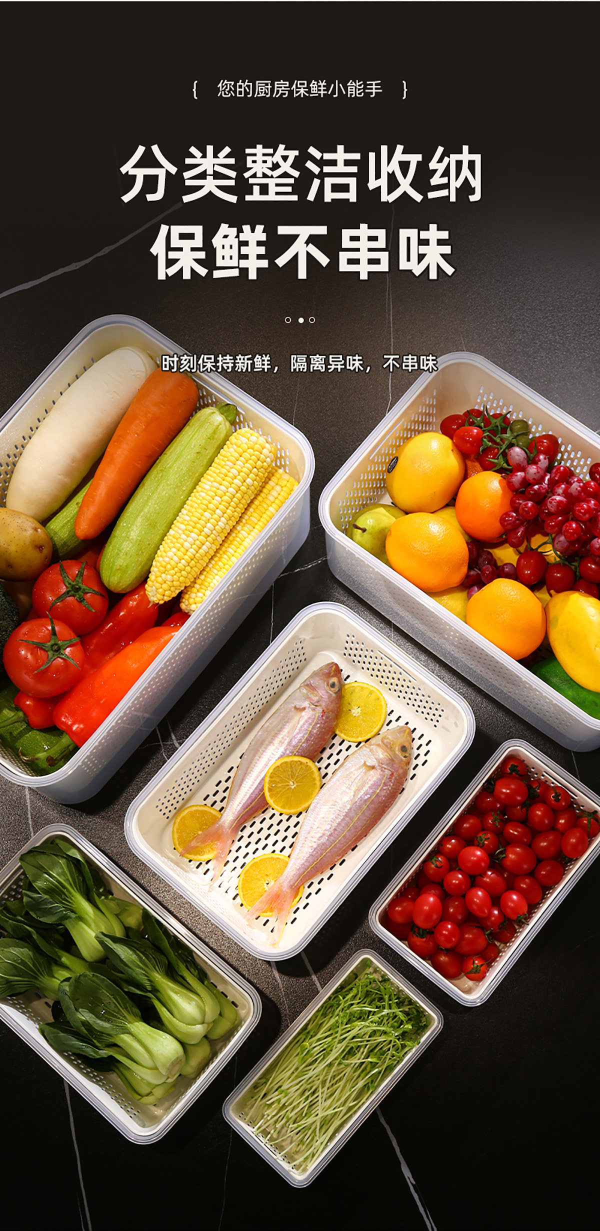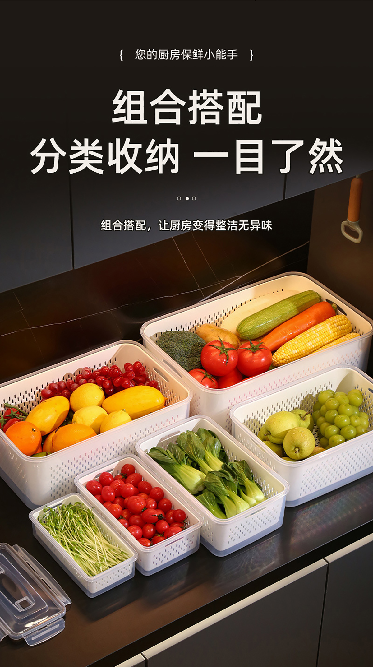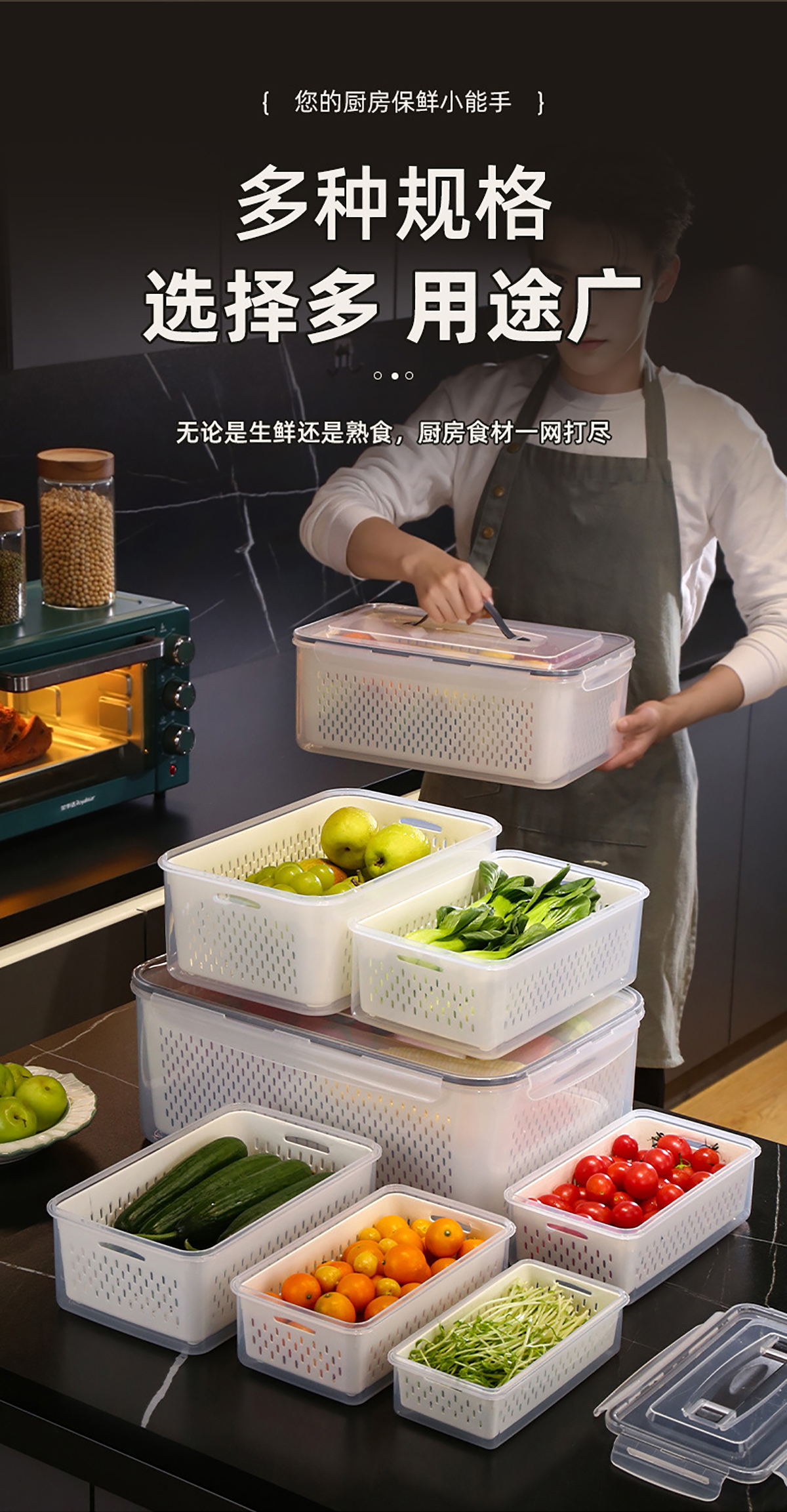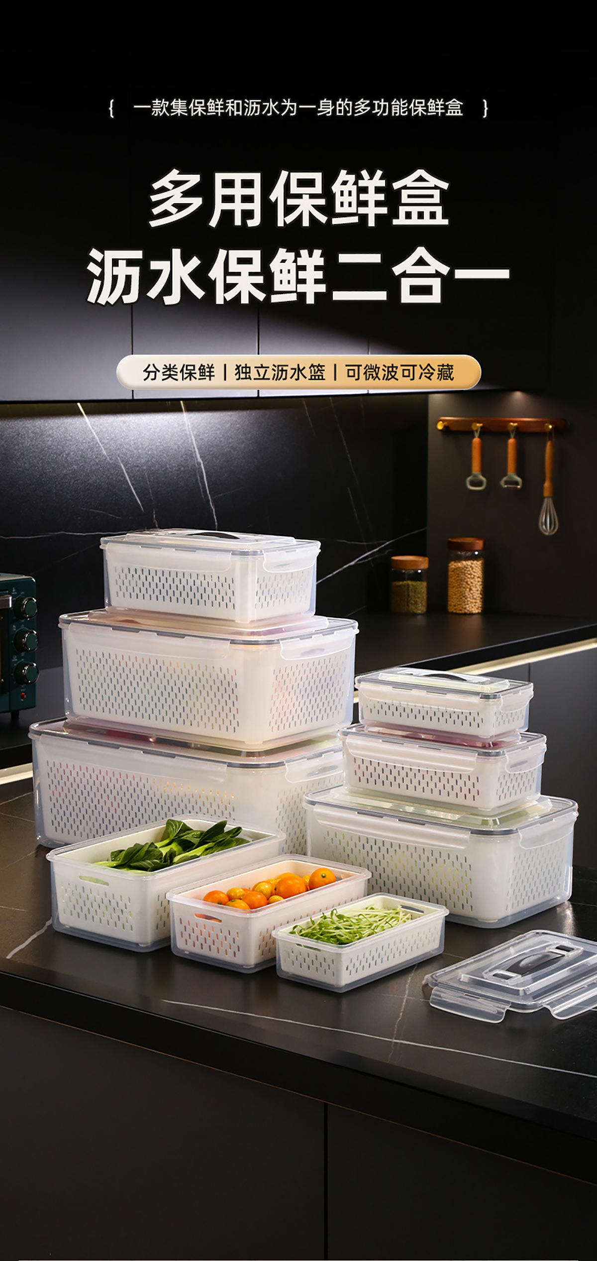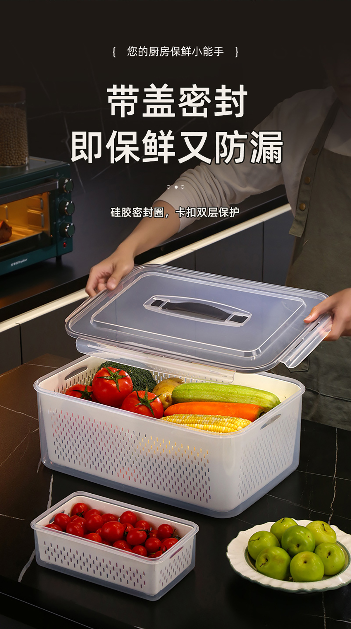 手提密封瀝水保鮮盒(800ml/1.7L/3.4L/6.0L/10.5L/16.5L)